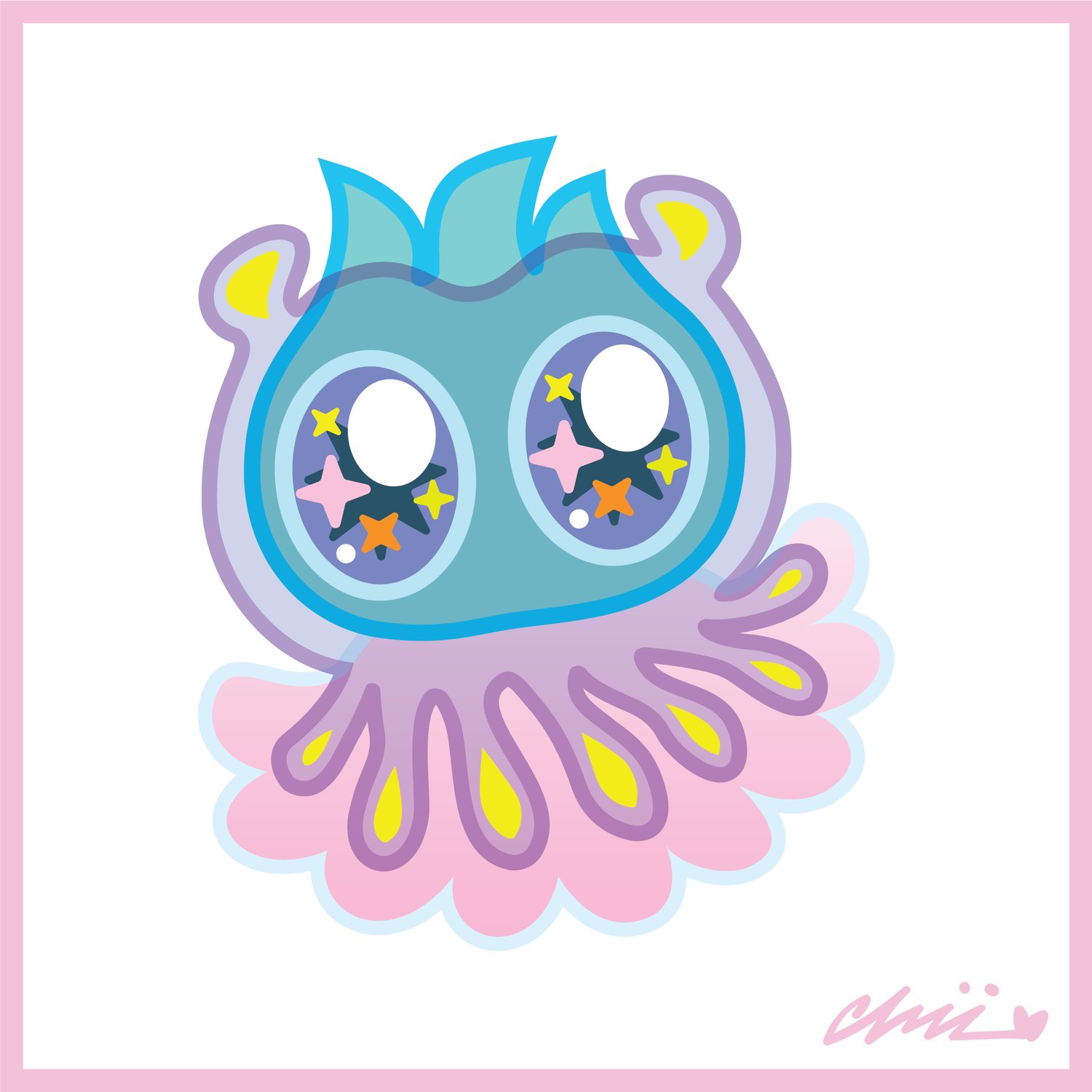 Inspired by the theme of “My Kind of Monster” and the playful shapes and motion of the monsters in my mash-up, I created a set of monsters with my “chii” aesthetic – cute, colorful and energetic. As I commonly do in my work, I utilized layering and transparency to create complexity and texture for each monster/character, which also helped in developing a story behind each of them to bring them to life in the eyes of those who view them. Together, they begin to build a sense of the world in which my kind of monsters might exist.